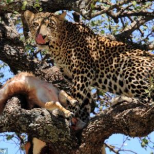 Algunas personas pagarían miles de dólares por almorzar con una vista espectacular, pero este astuto leopardo lleva sus comidas a otro nivel. Estas increíbles imágenes muestran al gran felino tomando…