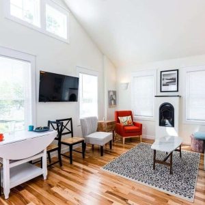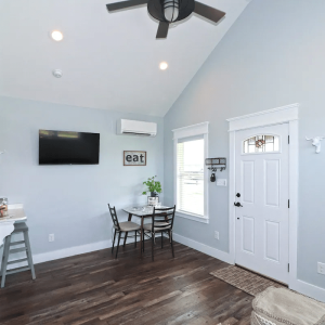A dreamy tiny house, everyone’s dream little shelter. This house has a small but functional kitchen, a cozy living room, a bedroom, and a bathroom. Walls and ceilings covered with…