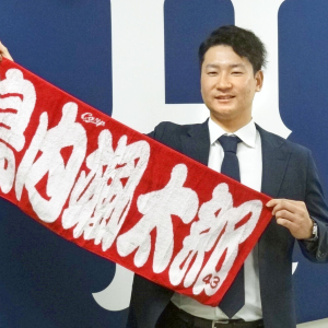 広島・島内颯太郎投手が6日、マツダスタジアムの球団事務所で契約を更改し、1800万円アップの年俸8800万円でサインした。 今季は58試合に登板し、防御率2・77。中継ぎながら、チーム最多タイの11勝(6敗)を挙げた。昨季の62登板に続く奮闘。「(11勝は)それだけ今年は接戦が多かったということだと思いますし、そこから野手が点を取って勝っている試合が多いという証拠。来年も接戦で抑えられるように、そういったポジションで投げられるように頑張りたい」と振り返った。 それでも「調子の波が大きかったし、勝ちパターンを投げる以上、そういうところは減らしていかないといけない」と反省。チーム最多登板は栗林の60試合で「栗林に届かなかったのは悔しいです。来年はチーム最多登板を目指して」と意気込んだ。年俸1億円の大台も見えてきたが「今年の成績では、なかなか厳しいですね。あまりそこばかり考えたくないですけど、1年間、結果さえ出せば、自ずとそういう金額に乗ってくると思う。目先の金額は考えず、自分の成績を」と語った。