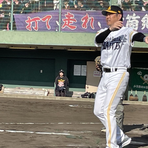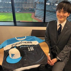 「エスコンシリーズ」の新ユニが感謝祭でお披露目 11月30日にエスコンフィールドで行われた日本ハムのファン感謝祭「F FES 2024」で、来年4月に開催される「エスコンフィールドシリーズ」の着用ユニホームが発表された。新ユニホームに袖を通した山崎福也投手、伊藤大海投手、万波中正外野手の立ち姿にファンからも熱い視線が注がれた。 【実際の写真】新ユニホームは「よく見たら雲ふわふわ」 独特デザインが「かわいいね」 この同シリーズの特別ユニホームは、今季4月の「エスコンフィールド1周年シリーズ」で着用したバージョンの進化系となる。黒を基調にエスコンフィールド外観の輪郭をイメージした直線的なデザインでファンから好評を得た。来季は、エスコンフィールドの建築美と雄大な北海道の自然がシームレスに融合されたデザインとなった。昨年に続き、球場をモチーフにした革新的なデザインが特徴だ。 大きな違いは北海道の空と、どこまでも広がる雲をデザインに落とし込んだところにある。さらなる高みを目指すチームの進化を象徴しているという。今季のものと比べると、曲線が加わる分やわらかな印象となった。 この日の発表を特別な思いで見つめている人がいた。「ファイターズ スポーツ&エンターテイメント プロモーション部」の佐藤優太さんだ。普段はテレビやWEB広告まわりの業務に従事しており、今季は特別ユニホームの制作に携わった。佐藤さんは学生時代から12球団の本拠地球場へ赴いては、ユニホームを買い漁る“オタク”だったという。 「私が学生だった2010年代は、さまざまな球団による限定や配布ユニホームの企画が流行り出したころでした。配布される日があれば、遠征してでもチケットを取るという、とにかく収集に熱心な野球ファンでした」。2021年に球団に新卒入社後も、ユニホーム制作に関わる機会をずっとうかがっていたが、社内で「担当したい」と言い続け、念願かなったという。この「エスコンフィールドシリーズ」は佐藤さんにとって3作目となる。 日本ハムのユニホームに刻まれる“重み” 「ファイターズのユニホームといえば『刺繍』なのですが、これにこだわりがあって、『ファイターズのロゴにはそれくらい重みがあるんだよ』と先輩たちから教えられてきました。でも刺繍って重量があるんですよね。なので、選手が動きにくくならないような配慮の必要性や、装飾しすぎると生地が突っ張ってキレイに見えないということに、手がけるようになって初めて気付きました」 さらに「選手に実際に着てもらって宣材(写真)を撮るときに、選手も毎年ユニホームを楽しみにしているということが伝わってきて、やりがいを感じます。実際にイメージしていた選手が着てみて、理想通りというか、理想以上だったとき、選手も感動してくれたり、喜んでくれたりしたときには同じく嬉しい気持ちになりますね」とやりがいを語った。 イベント当日の“光景”は何よりの喜びとなる。「試合が終わっても(ファンが)着続けてくださっている姿を見ると、やっぱり作ったものは残っていくのだなと思いますし、それだけ気に入ってくださっているのかなって思うと、それもまた嬉しいですね」。 今回の特別ユニホームの推しポイントは「背ネーム」だという。通常は背番号の上に配置されているが、特別ユニホームは下についているという。また、ブラックの素地に雲をイメージした柄が入ったストッキングにも注目。「“オールドスタイルマニア”の方はぜひそこに注目してほしいなと思います」とうなずいた。 「エスコンフィールドシリーズ」は、来年4月11日から8日間開催される。すでに選手の背ネーム入りユニホームの一般発売も始まっている。来季が待ちきれないファンはまずはユニフォームから揃えてみてはいかがだろうか――。