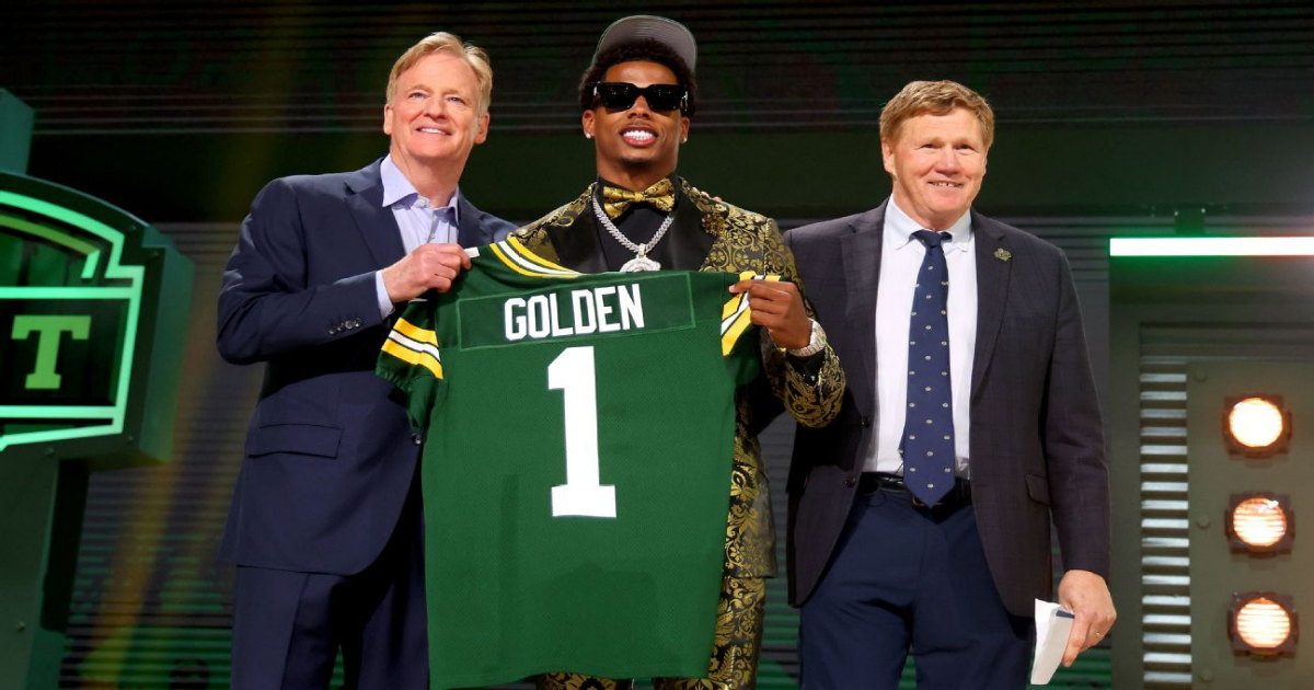 And wait, it gets better. I ranked Golden 16th overall. He was my second-ranked receiver in the class behind Travis Hunter, yet we saw Tetairoa McMillan and Emeka Egbuka go before him. This is a really nice marriage of value, need and upside. What a night for the host city.