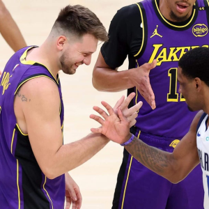 Kyrie Irving embraces ‘hermano’ Luka Dončić after emotional Lakers-Mavs meeting