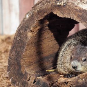 Staten Island Chuck shyly stays put in his log home, predicting an early spring during the annual Groundhog Day prediction at the Staten Island Zoo on Sunday, Feb. 2, 2025….