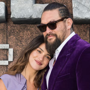 Jason Momoa and Adria Arjona Coordinate in Purple on the Red Carpet