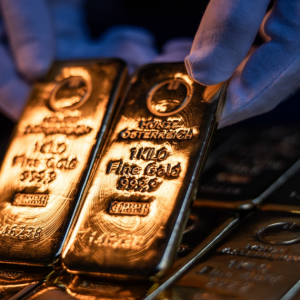 An attendant holds 1-kilogram gold bars on Feb. 17, 2025. Gold prices crossed $3,000 an ounce for the first time, as President Donald Trump’s tariffs against major trading partners roil financial…