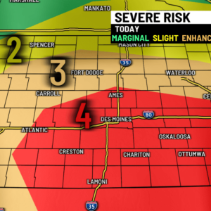 DES MOINES, Iowa — Warm conditions Friday will pave the way for chances for strong and severe thunderstorms in central Iowa. Most of central Iowa is under a somewhat rare…