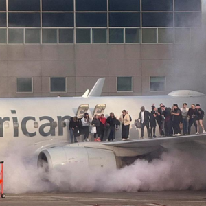 American Airlines passengers evacuate onto wing after jet catches fire