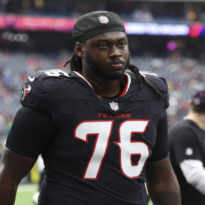 Sep 29, 2024; Houston, Texas, USA; Houston Texans guard Kenyon Green (76) during the game against the Jacksonville Jaguars at NRG Stadium. Mandatory Credit: Troy Taormina-Imagn Images / Troy Taormina-Imagn…