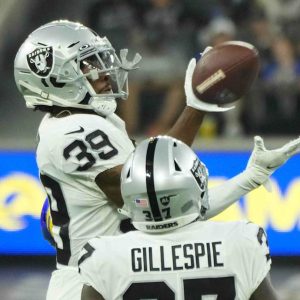 Then-Las Vegas Raiders cornerback Nate Hobbs (29) intercepts a pass against the Los Angeles Rams / Kirby Lee-Imagn Images GREEN BAY, Wis. – New Green Bay Packers cornerback Nate Hobbs…