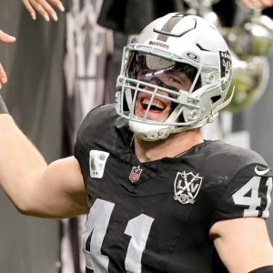 by Matthew Seeman Mon, March 10th 2025 at 12:37 PM LAS VEGAS, NEVADA – JANUARY 05: Robert Spillane #41 of the Las Vegas Raiders high-fives fans as he takes the…