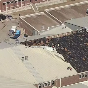 NBC 5 News Severe thunderstorms ripped part of the roof off of Plano West Senior High School Tuesday morning. The school, located at 5601 Parker Road, is a two-story brick…