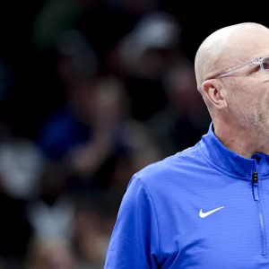 Dallas Mavericks head coach Kidd reacts during the second half against the Miami Heat at American Airlines Center. / Kevin Jairaj-Imagn Images dark. BREAKING. Kyrie injury. Kyrie Irving Out for…