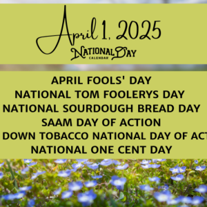 April 1, 2025 | APRIL FOOLS’ DAY | NATIONAL TOM FOOLERYS DAY | NATIONAL SOURDOUGH BREAD DAY | SAAM DAY OF ACTION | TAKE DOWN TOBACCO NATIONAL DAY OF ACTION…