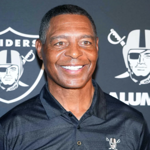 Aug 13, 2023; Paradise, Nevada, USA; Marcus Allen poses on the silver carpet during the Raiders Alumni Reunion at Allegiant Stadium. Mandatory Credit: Kirby Lee-Imagn Images / Kirby Lee-Imagn Images…