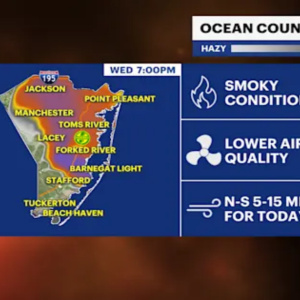 FORECAST: Wildfire smoke in Ocean County is moving southwards along the coast this morning into Atlantic and Cape May counties due to a light northerly wind. As temperatures warm this…