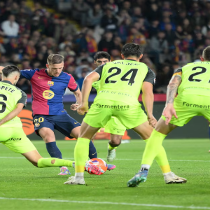 Dani Olmo dispara a portería para anotar el gol de la victoria del Barcelona este martes ante el Mallorca.David Ramos (Getty Images) El Barcelona salió ileso y limpio, alegre como…