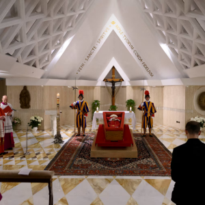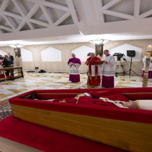 By Vatican News At 8:00 PM on Monday, Cardinal Kevin Farrell, Camerlengo of the Holy Roman Church, presided over the rite of ascertainment of death and placement of the late Pope…