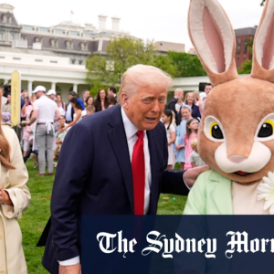 It was all smiles as Donald Trump stood between his wife Melania and the Easter Bunny on the White House’s south balcony and spoke of “bringing religion back to America”….