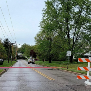 ZANESVILLE– Strong storms rolled through the area shortly after 3:00 pm Tuesday causing widespread power outages and damage. A large pine tree came down on Dresden Road near Karl Road…