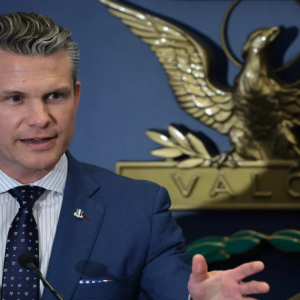 Defense Secretary Pete Hegseth speaks during a reenlistment ceremony for Congressional Medal of Honor recipient Sgt. Dakota Meyer at the Pentagon on April 17, 2025 in Arlington, Virginia. Photo: Alex…