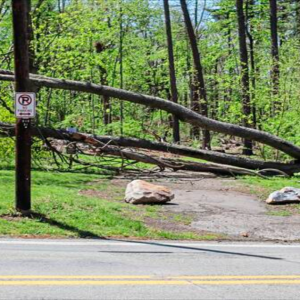Kristina Serafini | TribLive Crews work to remove a large tree that toppled along Aurelius Street in Swissvale in Tuesday evening’s severe storms as seen Wednesday, April 30, 2025. Kristina…