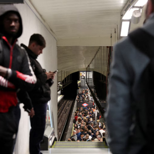 Item 1 of 4 People wait at a metro station as metro operations resume partially, after power begins to return following a huge outage that hit Spain and Portugal, in…