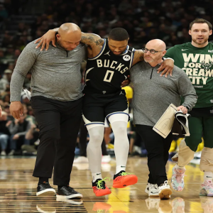 (Stacy Revere via Getty Images) Damian Lillard’s season may now be over. The MIlwaukee Bucks star went down with a left ankle injury just minutes into their 129-103 loss to…