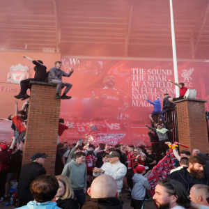 Stranger Things actress Millie Bobby Brown and the young star of hit Netflix drama Adolescence were among thousands of fans celebrating Liverpool’s Premier League title. The red half of the…