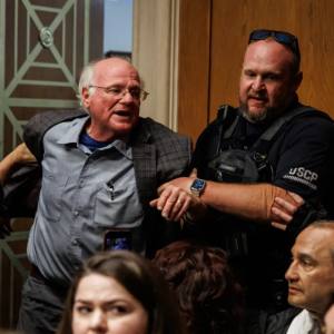 Ben Cohen, co-founder of Ben and Jerry’s, is detained by U.S. Capitol Police for disrupting proceedings during a hearing with U.S. Secretary of Health and Human Services Robert F. Kennedy…