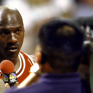 facebook (opens in new window) twitter (opens in new window) linkedin (opens in new window) email (opens in new window) Michael Jordan is interviewed by NBC Sports sideline reporter Ahmad…