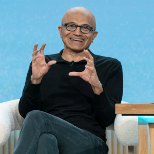 Microsoft CEO Satya Nadella speaks at an event commemorating the 50th anniversary of the company at Microsoft headquarters in Redmond, Washington, on April 4, 2025. Microsoft shares rose about 9%…
