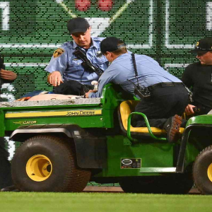 A fan is carted off after falling onto the field at PNC Park on April 30. Photo: Joe Sargent/Getty A baseball fan was hospitalized after falling from the stands above…