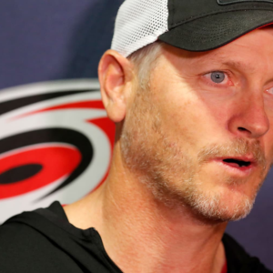 Tom Dundon, owner of the Carolina Hurricanes, speaks to media before an NHL game against the New York Rangers at PNC Arena in Raleigh, North Carolina, on Feb. 19, 2019….