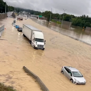 Video captured on Tuesday, Aug. 12, shows cars and trucks in Tennessee stranded on a flooded interstate, as the waters forced all lanes to shut down. The waters on the…