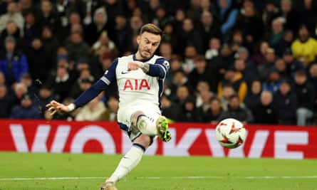 James Maddison scores Tottenham’s second goal during the 3-1 win against AZ Alkmaar. Photograph: Ian Walton/AP