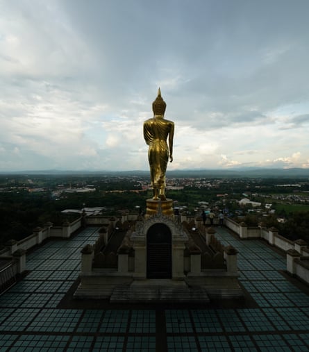 The view from Wat Phra That Khao Noi, a hilltop temple with a 9m-tall Buddha blessing the city of Nan. Photograph: Leigh Griffiths