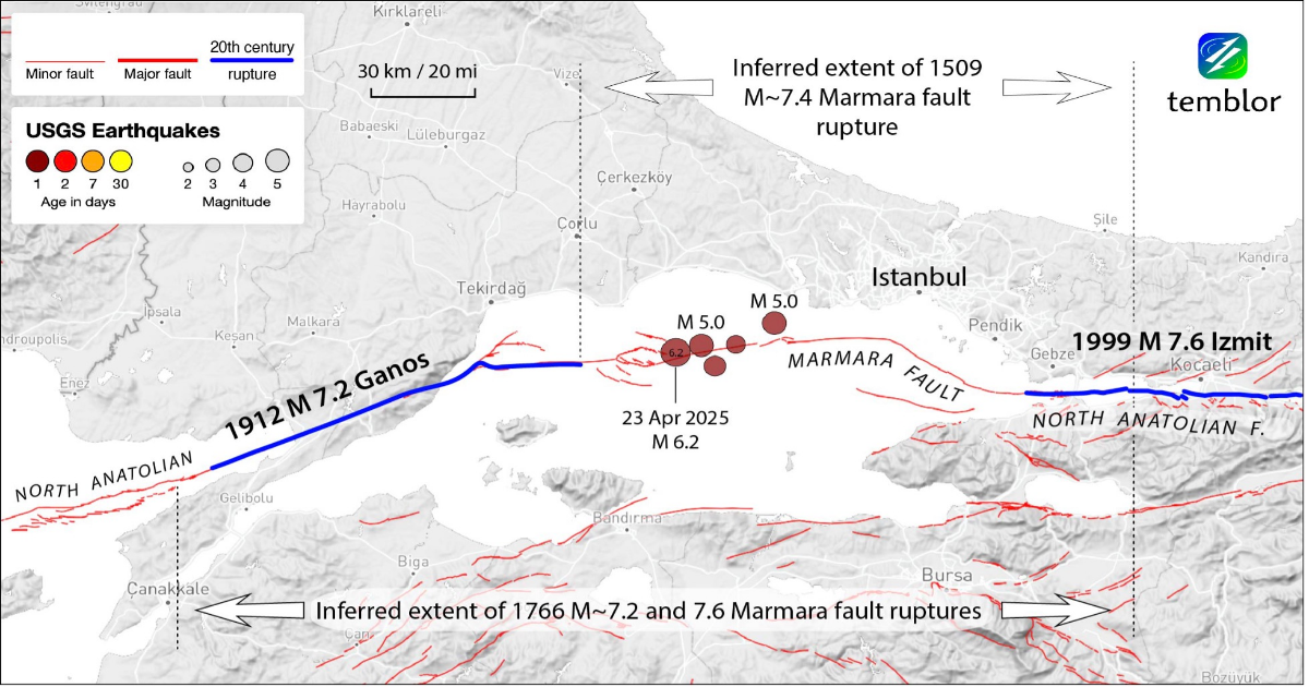 Citation: Stein, R.S. and Sevilgen, V., 2025, A magnitude 6.2 quake strikes the Marmara Fault at site of large historic earthquakes near Istanbul, Temblor, http://doi.org/10.32858/temblor.361