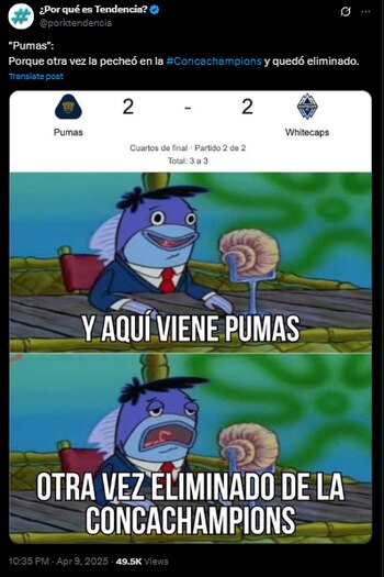 Los memes tras la eliminación de Pumas en Concachampions. (X/Jess Espitia)