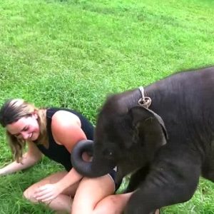 Una turista estadounidense se echó a reír cuando un adorable elefante la colmó de afecto. En un conmovedor vídeo, se puede ver a una cría de elefante llamada Suki interactuando…