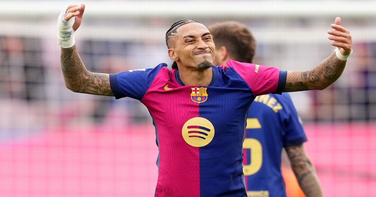 Raphinha celebra su doblete ante Celta Alex Caparros/Getty Images