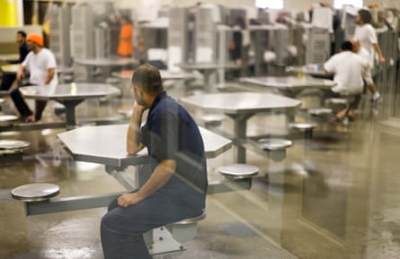 A detainee sits in a common and sleeping area at the Moshannon Valley processing center, a former prison repurposed as an immigration detention facility operated by the GEO Group, in Philipsburg, Pennsylvania, in July 2023. Photograph: Quinn Glabicki/Reuters