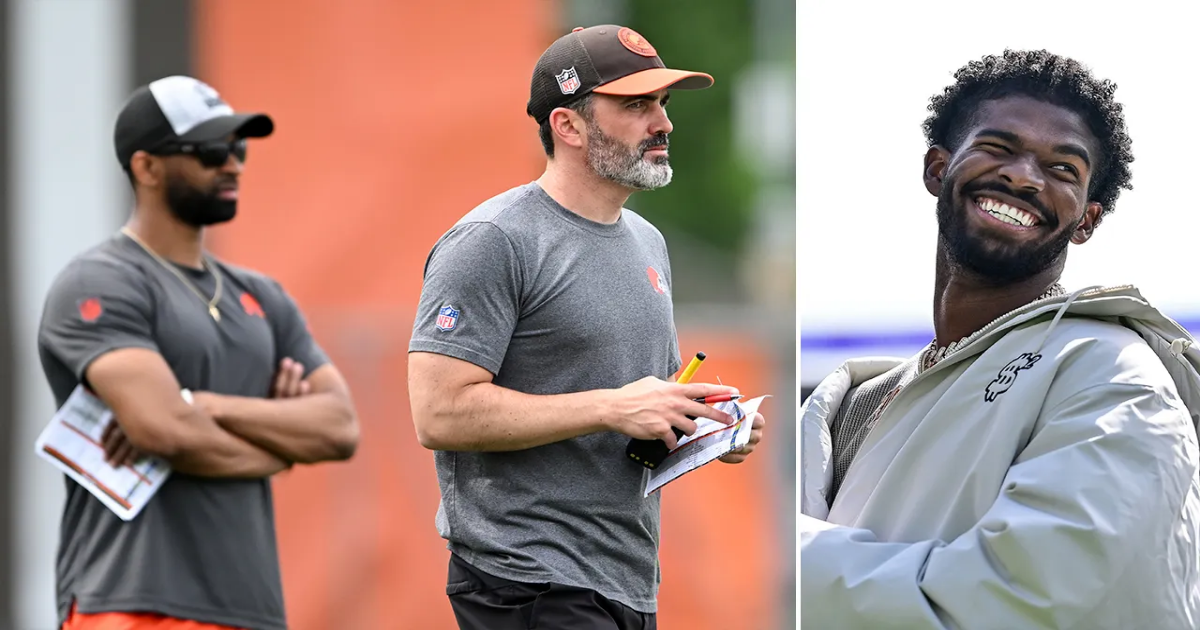 ESPN footage of Browns head coach Kevin Stefanski and general manager Andrew Berry showed light golf claps with blank facial expressions in the team’s war room after the pick of Sanders was announced.