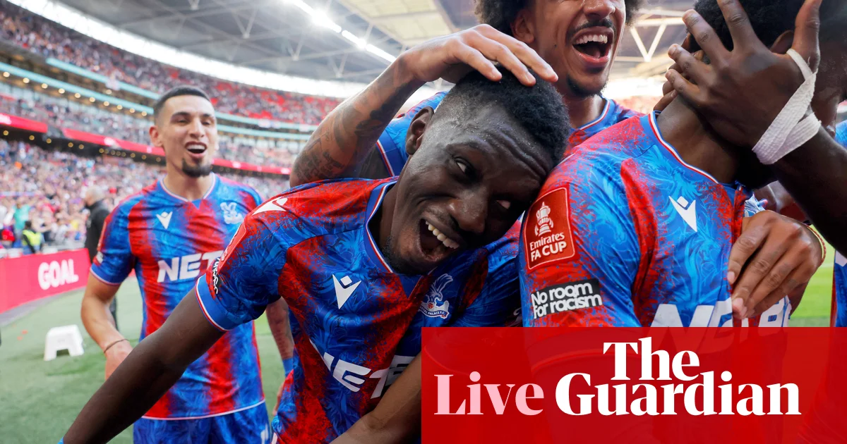 Half-time punditry. Eberechi Eze’s strike was magnificent, a first-time power curler towards the top-left corner. But according to Wayne Rooney on the BBC, Emi Martinez has “got to save it.” The shot was within reach, that’s for sure, but perhaps that’s slightly harsh, so well was it struck. Still, it went near, if not quite through, him, so opinions will vary. If it does go down as a mistake, it’s the latest in a grim run for the Villa keeper, who has been recently questioned for his role in goals against PSG, Nottingham Forest and Manchester City. Additionally, Gary Lineker is sure the generous chalking-off of Jean-Philippe Mateta’s effort just before the goal was bogus. Rooney agrees, spluttering that if anything: “It’s a foul on Mateta!”