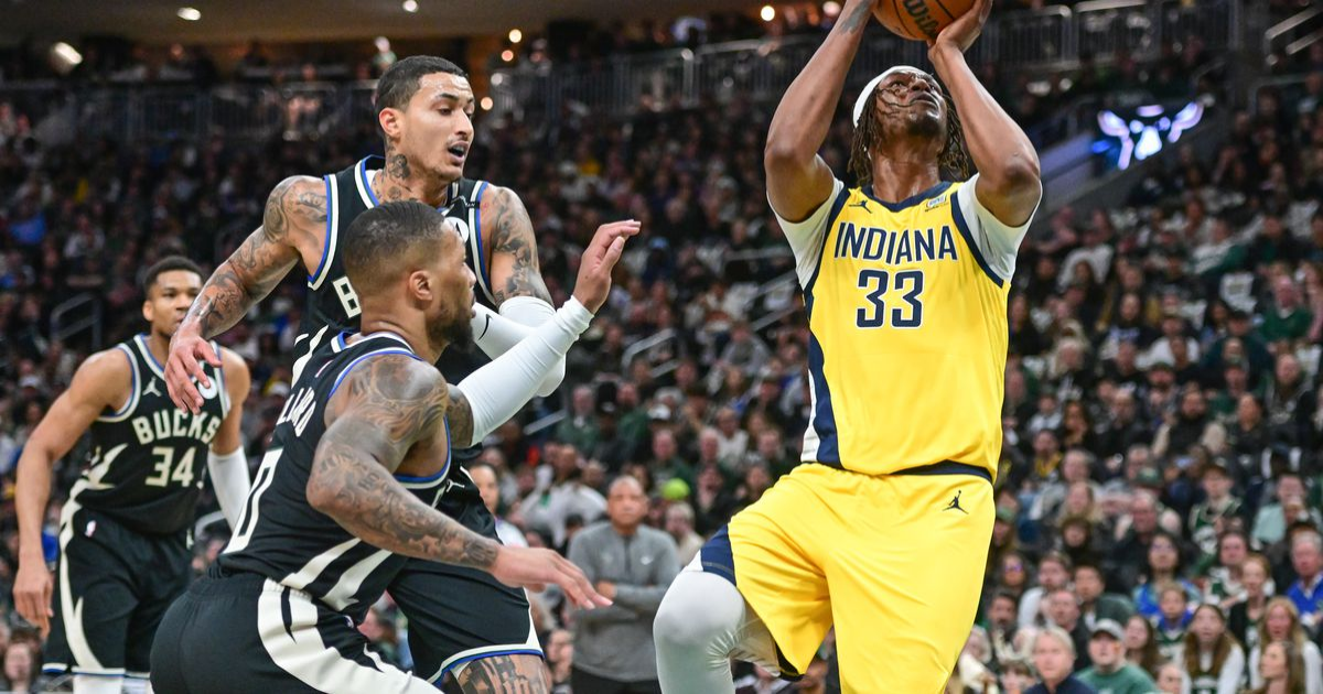 While Game 4 between the Milwaukee Bucks and Indiana Pacers is ongoing as of this writing, the team will have to head forward tonight (at least) without Damian Lillard on the court. With a few minutes left in the first quarter, Lillard went down with a non-contact injury grabbing at his left calf after a quick direction change going after a loose ball rebound. He was able to tap the ball to Gary Trent Jr., but couldn’t get up while play continued before the Bucks were able to foul.