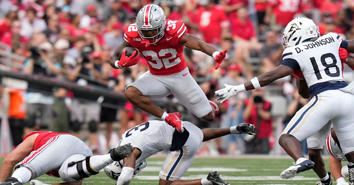 The Browns could be in the market for Henderson, who rushed for 1,016 yards and 10 touchdowns last season. / Adam Cairns/Columbus Dispatch / USA TODAY NETWORK via Imagn Images