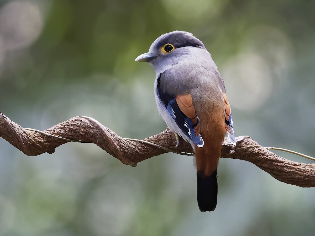 The Silver-Breasted Broadbill is a small bird that measures around 15 centimeters in length. It has a bright green body with a silver-grey breast and a distinctive blue crown. Its wings are also blue, and it has a short, hooked bill. One of the most ѕtrіkіпg features of this bird is its bright red eyes, which are surrounded by a ring of blue skin.