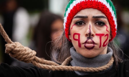 A protester at a demonstration in the US against the use of the death penalty in Iran, which executed at least 972 people last year. Photograph: Allison Bailey/NurPhoto/Rex/Shutterstock