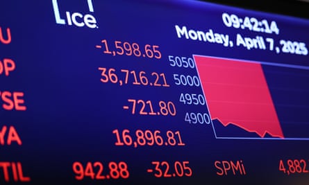 Stock market numbers are displayed on the New York stock exchange on Monday. Photograph: Michael M Santiago/Getty Images