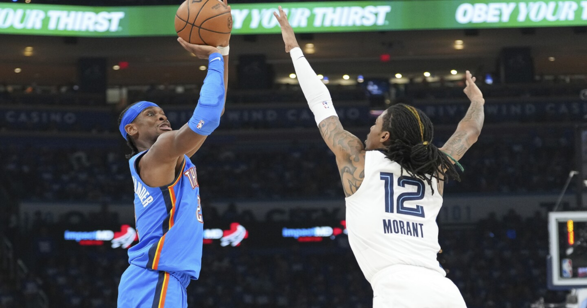 Gilgeous-Alexander, who had been off for the first five quarters of the series, found his shot in the second quarter. He hit two 3-pointers 55 seconds apart to put Oklahoma City up 55-38. Oklahoma City led 70-52 at the break after setting a team playoff record with 12 3-pointers in the first half.