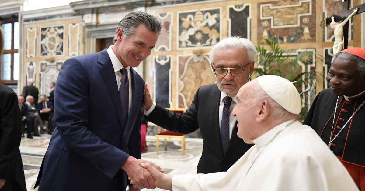 Newsom identifies as Catholic and grew up attending Catholic schools. He traveled to the Vatican last year with Siebel Newsom to participate in a climate solutions summit.